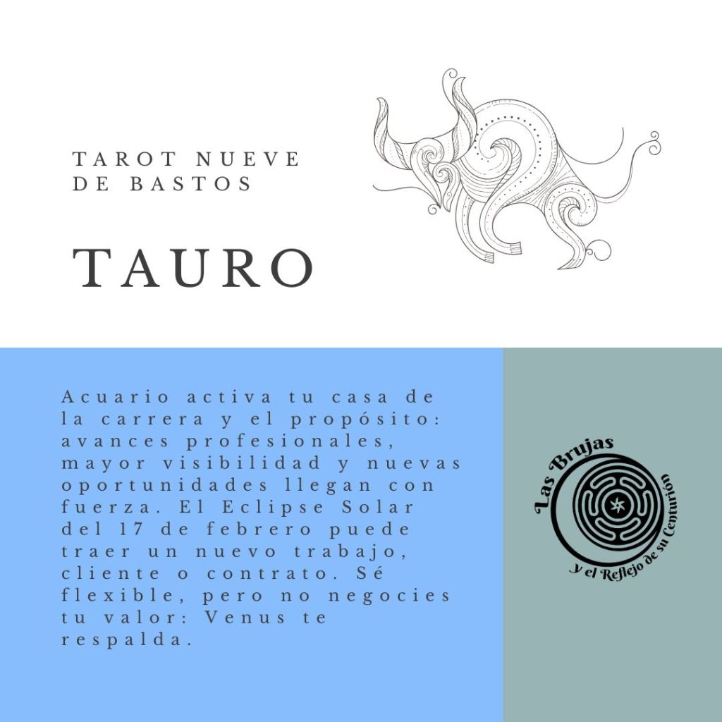 Grandes cambios se están gestando para ti, Tauro. Durante la temporada de Acuario, este signo activa tu décima casa, el área de la carrera, la vocación, la visibilidad pública y el propósito de vida. Las próximas semanas te impulsan a trabajar con determinación y a dar pasos firmes hacia metas que llevas tiempo construyendo. El Eclipse Solar Anular del 17 de febrero marca un nuevo comienzo profesional: un nuevo empleo, cliente, proyecto o contrato puede manifestarse como resultado directo de tu constancia.