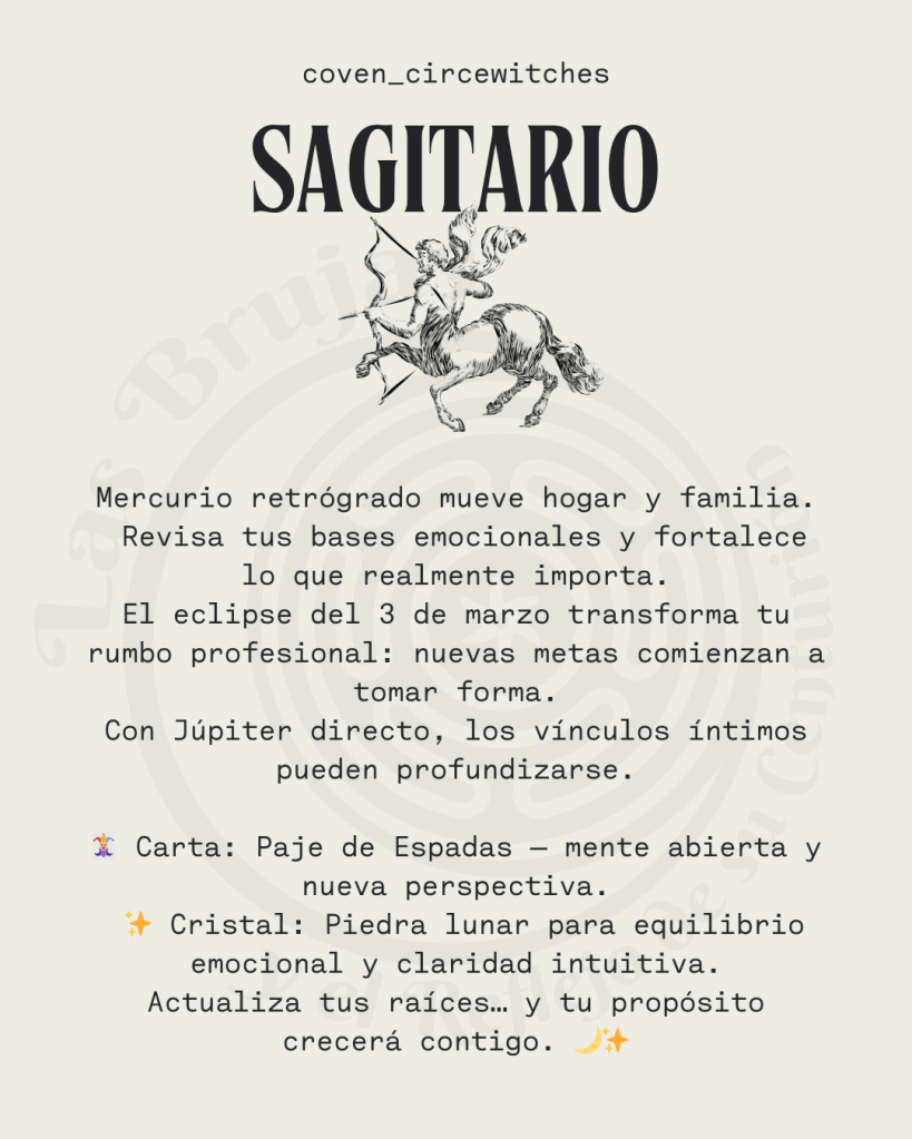 Mercurio trabajará de la mano con Júpiter —tu planeta regente— que retoma su movimiento directo el 10 de marzo. Desde ahora y hasta el 7 de julio, se abre una etapa favorable para profundizar vínculos íntimos y fortalecer relaciones significativas. Lo que se construya desde la vulnerabilidad tendrá mayor solidez.