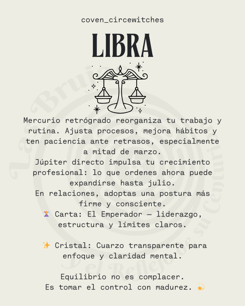 Se activa una etapa de reorganización, Libra. Mercurio retrógrado transita tu sexta casa entre el 25 de febrero y el 20 de marzo, enfocando tu atención en el trabajo, la rutina y los procesos diarios.