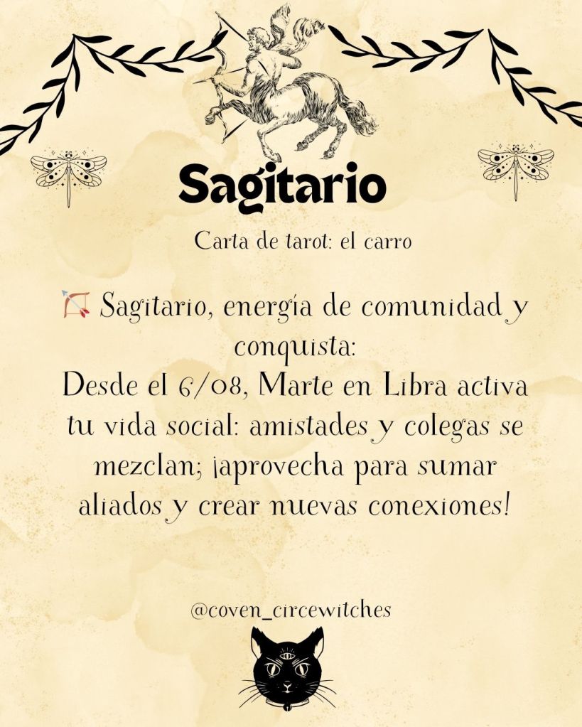 Sagitario, la temporada de Leo se presenta como una etapa vibrante, llena de movimiento y nuevas conexiones. Tras el esfuerzo de la anterior temporada, ahora el universo te impulsa a abrirte a la colaboración y la vida social. A partir del 6 de agosto, con Marte en Libra, vivirás seis semanas en las que tu agenda social se activa intensamente: verás cómo amigos y colegas se entrelazan, y los límites entre lo personal y lo profesional se diluyen. Disfruta de esta energía, pues los lazos que crees pueden crecer hacia colaboraciones o amistades duraderas.