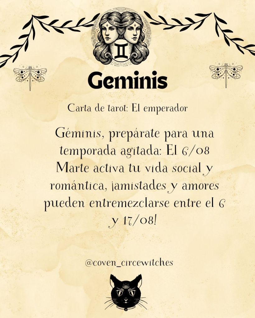 Prepárate, Géminis, porque la temporada de Leo será un torbellino de actividad social y nuevas oportunidades en el amor. La llegada de Marte a Libra dinamiza tu vida social a partir del 6 de agosto, abriendo puertas tanto a amistades como a posibles romances. Entre el 6 y el 17 de agosto, podrías notar que los límites entre la amistad y el amor se tornan más difusos de lo habitual, llevándote a cuestionar y redefinir tus vínculos más próximos.