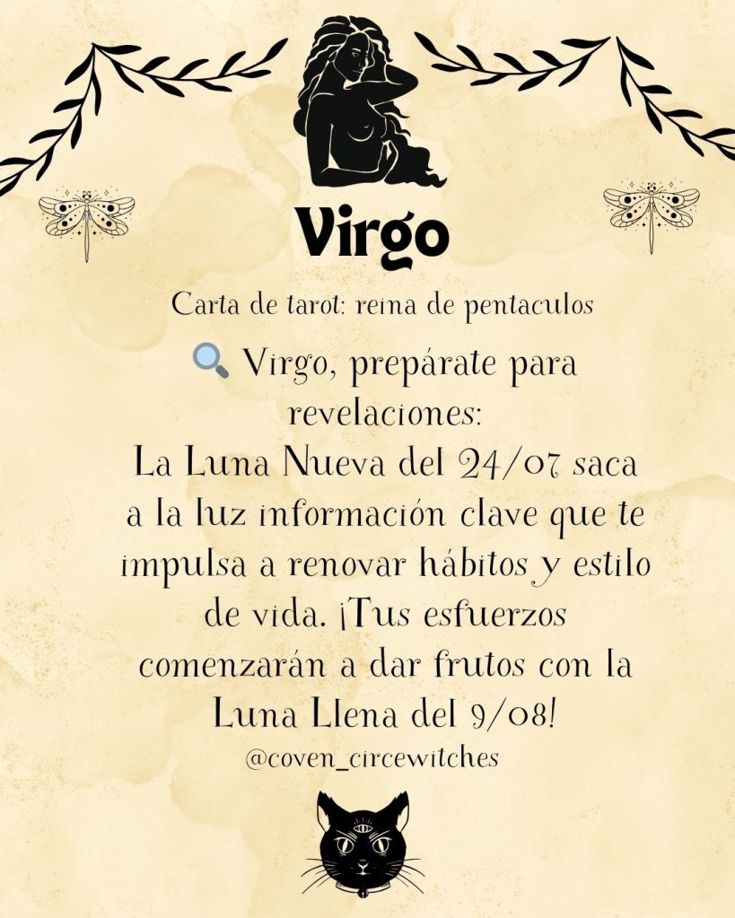 Esta temporada trae grandes descubrimientos para ti, Virgo. La Luna Nueva en Leo del 24 de julio marca el comienzo de una etapa en la que verdades ocultas saldrán a la luz, especialmente sobre cambios que vienes gestando desde el final de la temporada de Cáncer. Puede ser el momento ideal para transformar tu estilo de vida y replantear tus hábitos profesionales. Notarás avances concretos tan pronto como llegue la Luna Llena del 9 de agosto, iluminando los frutos de tus recientes decisiones.