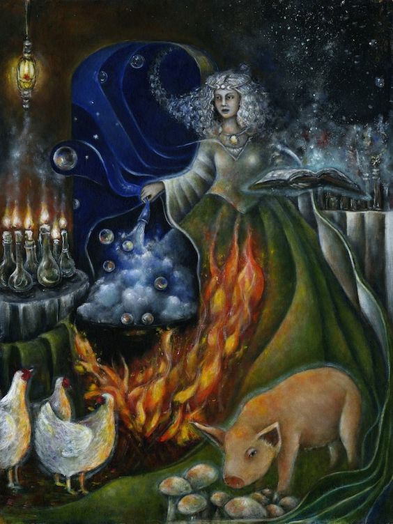 Como nota, muchas historias de diosas a menudo se convirtieron en historias sobre hechiceras, brujas y otras mujeres con medios mágicos, lo que es más notable en sociedades patriarcales más estratificadas. El libro Goddesses in World Mythology afirma que originalmente era una diosa, «luego relegada al estado de hechicera».