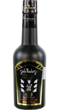 - La botella original (tapa dorada o metálica, etiqueta negra con siete cabezas)