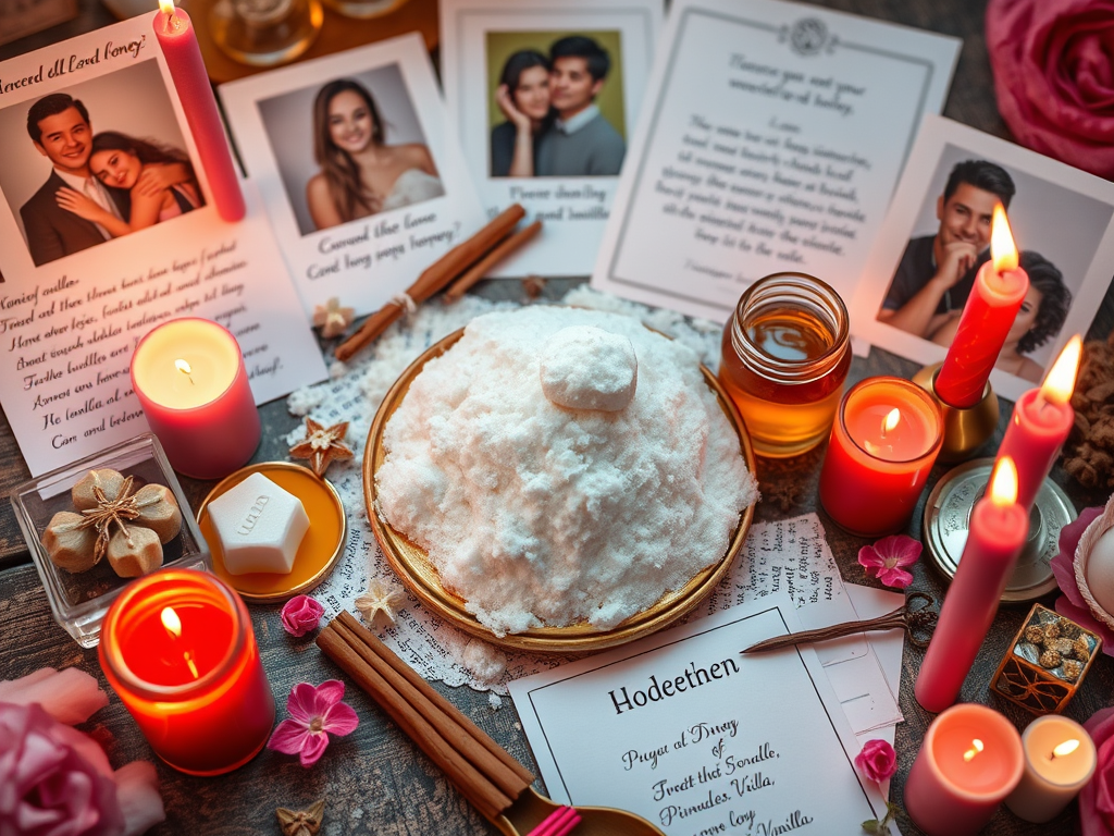 Este es el significado más común cuando se habla de «endulzamientos» en un contexto menos literal. En este ámbito, los endulzamientos son rituales o hechizos que tienen como objetivo mejorar una relación, atraer el amor o el afecto de una persona hacia otra, o «endulzar» los sentimientos en una situación particular. Estos rituales suelen involucrar el uso de elementos simbólicos, como velas, hierbas y líquidos, que se utilizan para crear un ambiente propicio para la manifestación de intenciones positivas.